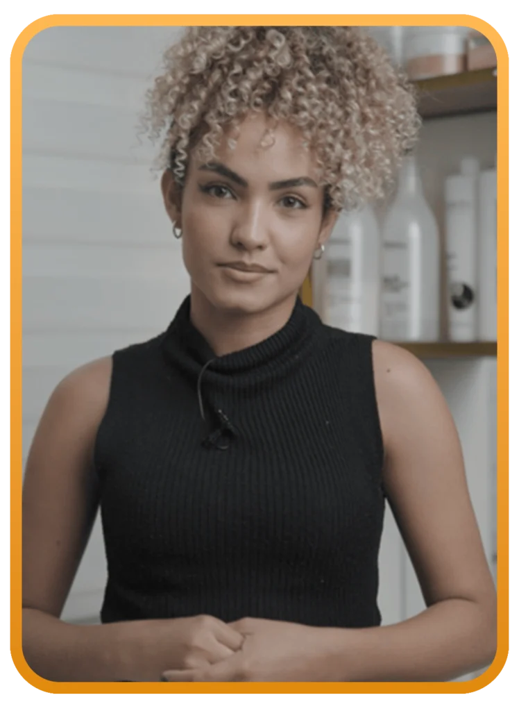 Amanda Lopes é educadora, cabeleireira premiada e uma das maiores referências em cabelos com curvatura no Brasil.