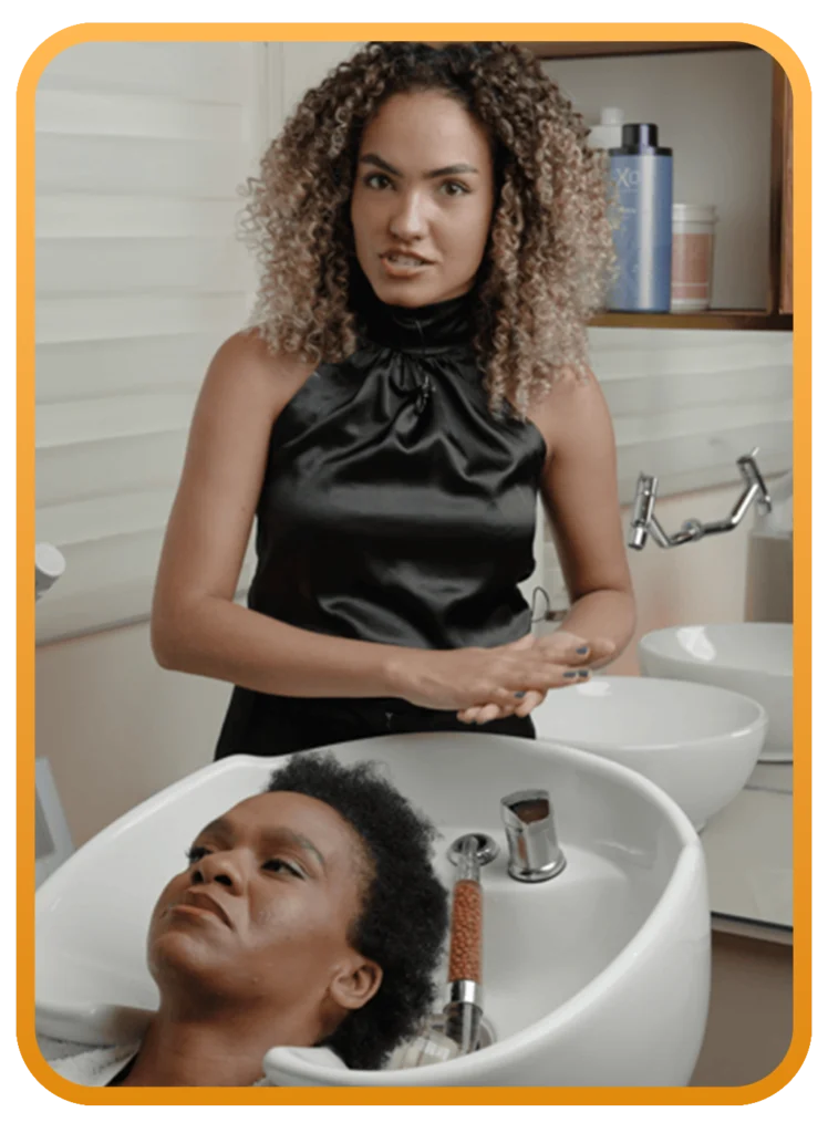 Com mais de 10 anos de experiência, ela já atendeu centenas de mulheres, foi jurada em eventos internacionais de beleza e é responsável por transformar a autoestima de milhares de cacheadas, crespas e onduladas.